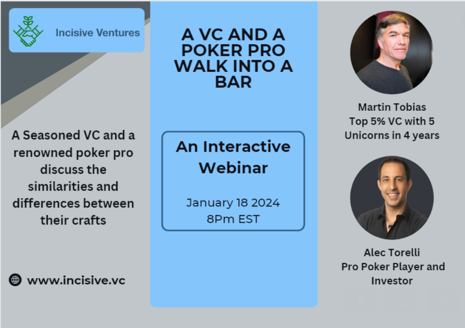 Yesterday, Alec Torelli and I discussed the similarities and differences between Poker and early-stage Tech investing. Some interesting learnings.